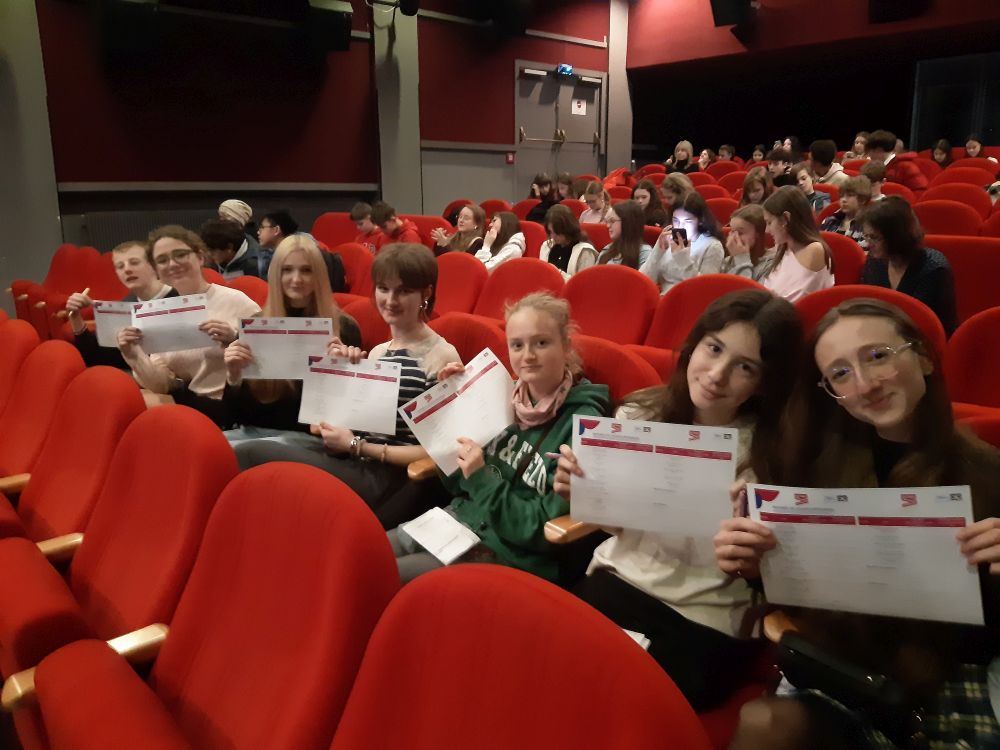 S velkou radostí se ohlížíme za dnešním dnem, který naši studenti francouzštiny ze 4.J strávili jako čestní hosté ve Francouzském institutu v Praze. Díky úspěšné účasti v soutěži „Chanter, jouer, enseigner“ dostali jedinečnou příležitost vidět své soutěžní video přímo na velkém plátně Kina 35.
